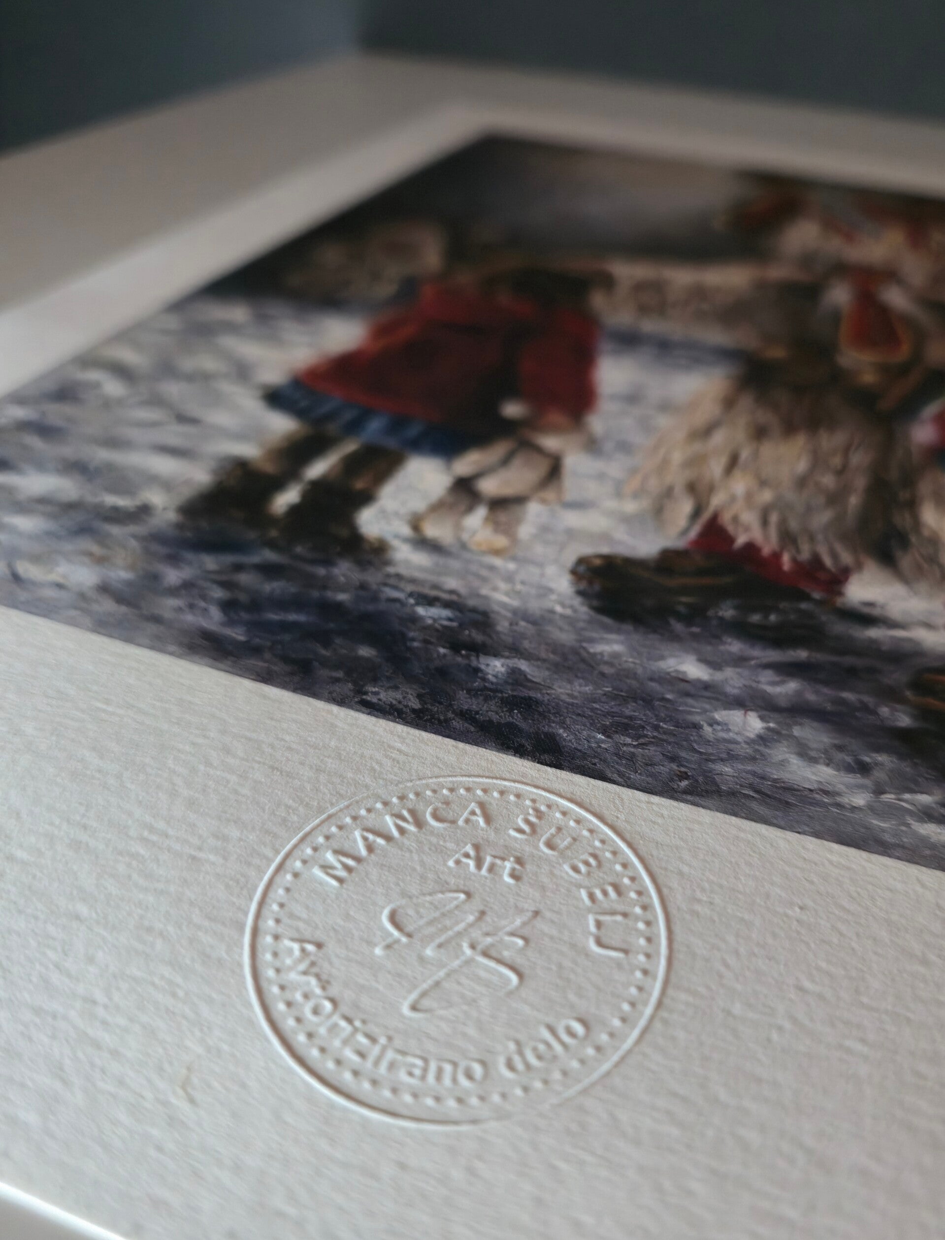 OPIS: Reprodukcija je natisnjena na arhivski, brezkislinski umetniški papir Hahnemühle Photo Matt Fibre (200 g/m²), znan po svoji izjemni kakovosti in prefinjeni mat površini. Celulozni papir nežno združuje naraven otip z visoko barvno ločljivostjo, kar omogoča izjemno podobo in mehko reprodukcijo originalnega dela.